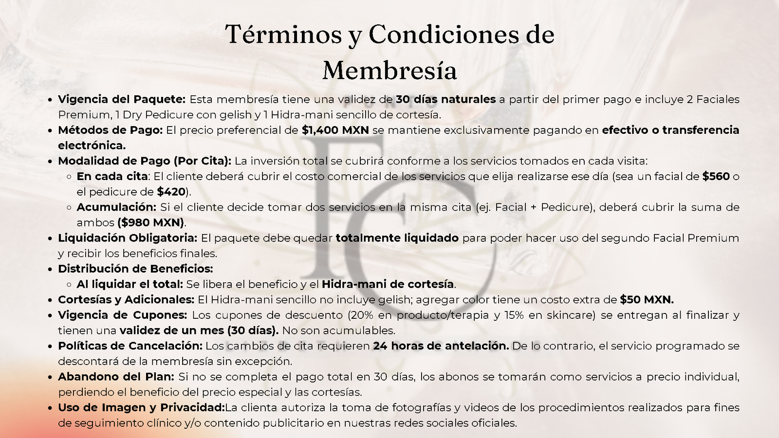 1 Hidra-mani Sencillo (Cortesía): Recibe un tratamiento de hidratación para tus manos sin costo adicional como parte de tu membresía.