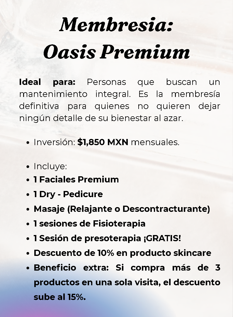 Membresía Oasis Premium: Tu Refugio de Revitalización Mensual