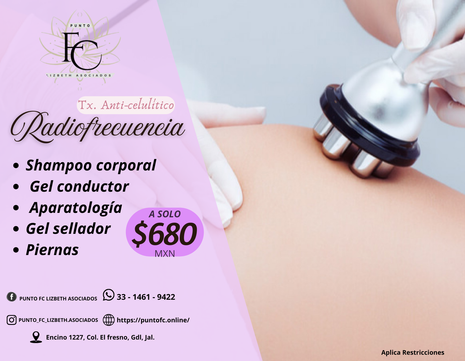 ¿Cansada de la “piel de naranja”? En Punto FC transformamos la textura de tus piernas con nuestra avanzada Radiofrecuencia Anti-celulítica. A diferencia de otros tratamientos, la radiofrecuencia utiliza calor profundo para reestructurar las fibras de colágeno y mejorar la microcirculación en las zonas afectadas por la celulitis.