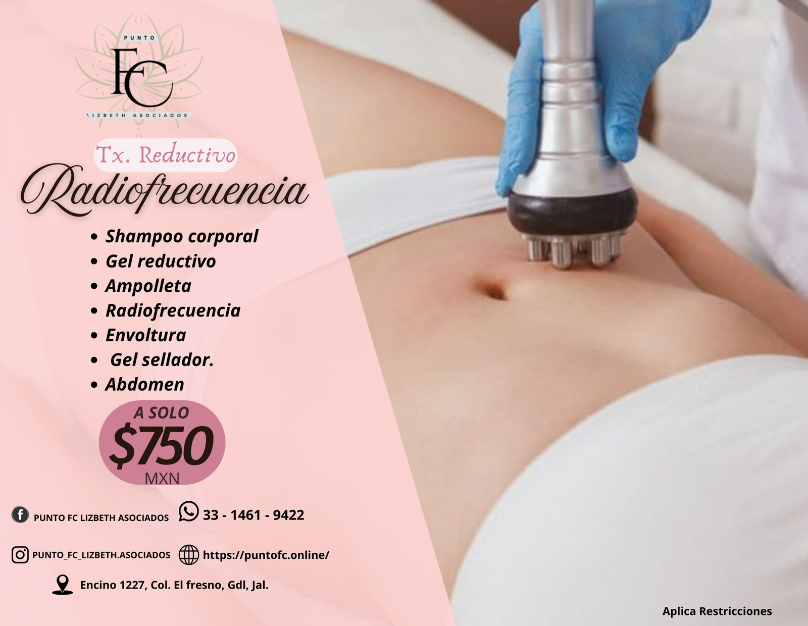 ¿Buscas reducir medidas y eliminar la flacidez al mismo tiempo? Nuestro tratamiento de Radiofrecuencia es la solución tecnológica ideal. A través de ondas electromagnéticas de alta frecuencia, generamos un calentamiento profundo y controlado en las capas de la dermis y el tejido adiposo.